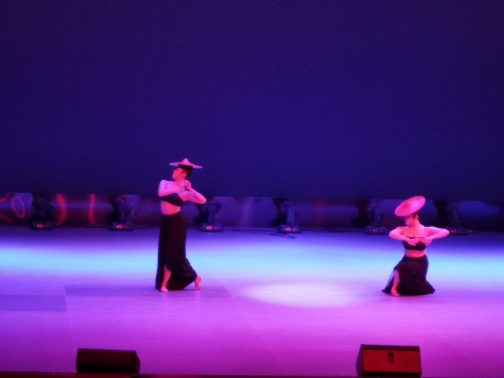 晚会开场是由朱纯、梁琪两位老师带来的傣族双人舞《幻》,舞台上他们宛如刚绽放的花朵,娇艳多姿,迅速点燃了现场观众的热情。