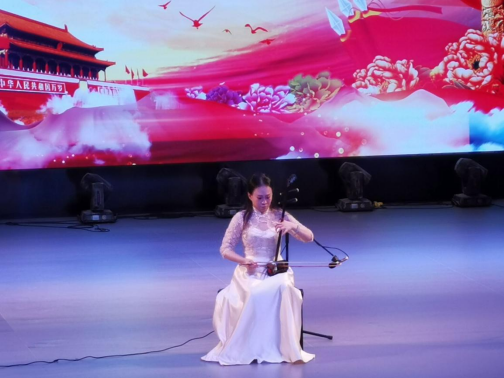 石丽琳老师的女声独唱《曙色》,曲调悠扬,旋律高亢,歌词凝练悲壮,字字铿锵,全曲起伏跌宕,气势磅礴,讴歌了中华民族自强不息顽强强奋进的民族精神,激励人们万众一心,走向民族复兴。