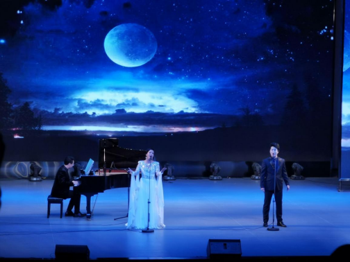周萌、欧阳蒨两位老师带来的男女声重唱《月光近,月亮远》,歌曲调婉转优美,情绪感浓烈,调式变化多样和声层次丰富,表达了对故乡的思念以及对和平的向往。