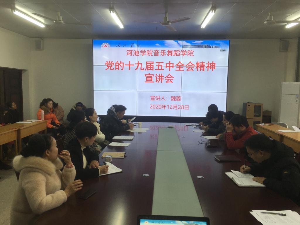 2020年12月28日上午,公司党委在艺术楼402会议室开展了十九届五中全会精神专题学习会。深入学习习近平总书记在党的十九届五中全会上的重要讲话和全会文件精神。宣讲会由公司党委书记魏菱主持,公司全体教职工参加宣讲会。