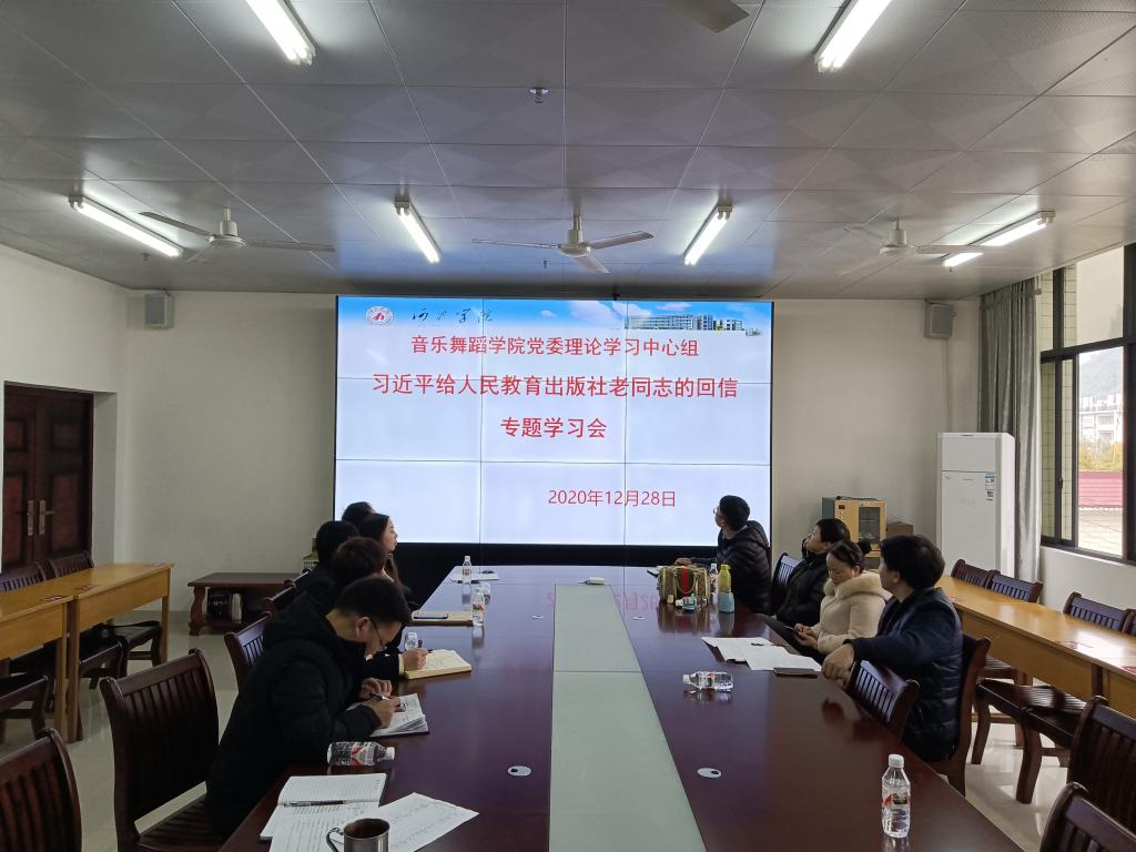 2020年12月28日下午,公司党委在艺术楼402会议室开展了习近平给人民教育出版社老同志回信精神学习会。公司党委书记魏菱主持会议并就学习内容作了中心发言。公司党委理论学习中心组成员,院领导,各党支部书记,各系部、教研室主任参加了会议。