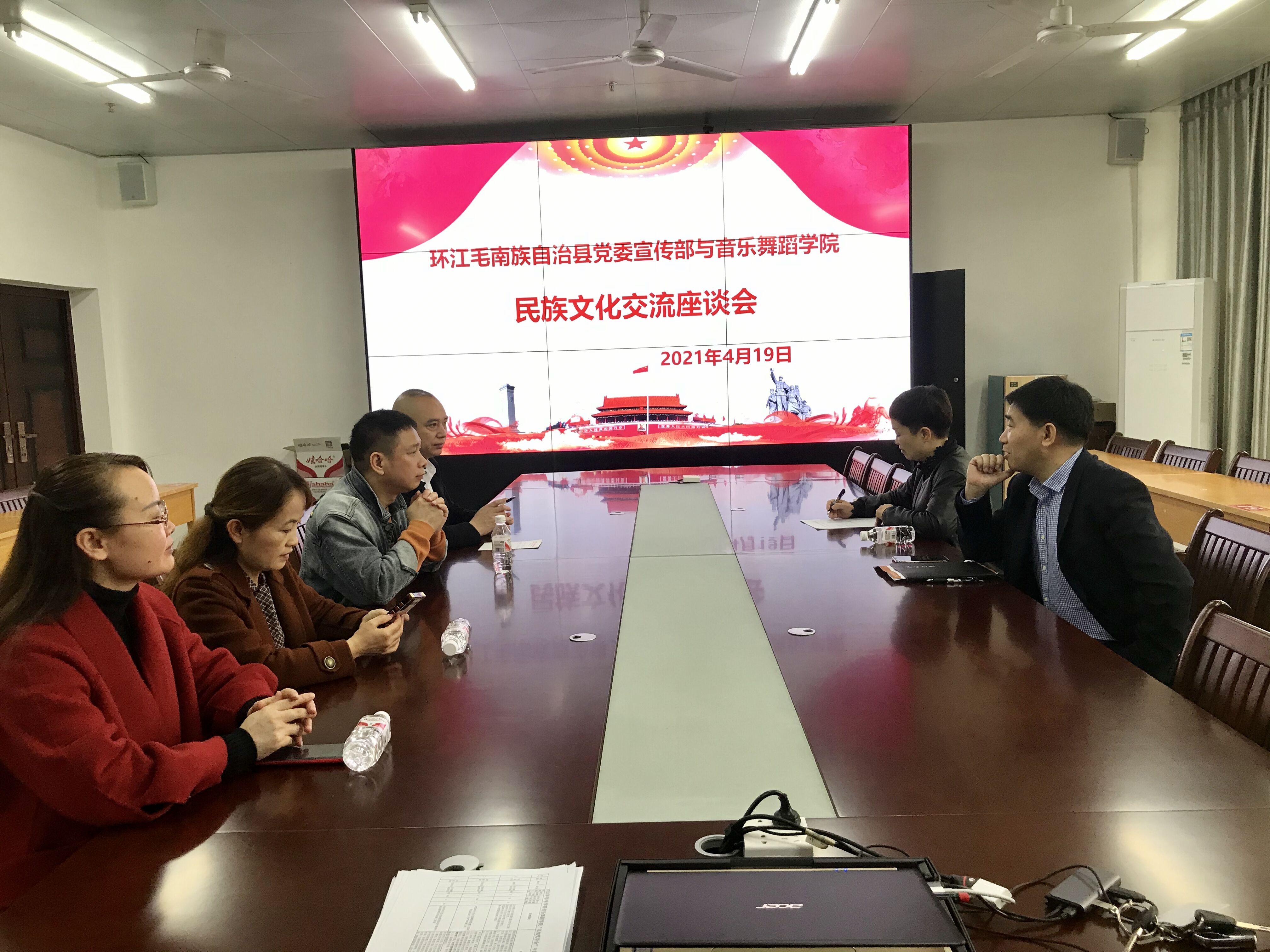在自治区、河池市党委宣传部的支持下鼓励下,环江毛南族自治县组织创作毛南族歌舞秀《艾南》(毛南人),以歌舞形式演绎毛南族神秘傩文化和丰富多彩的民歌艺术。环江毛南族自治县文化宣传部拟邀请公司40名员工及3位教师参加节目排练、演出,双方就演出事宜进行商议洽谈及对少数民族艺术创作进行沟通交流。(通讯员 陈柳希)