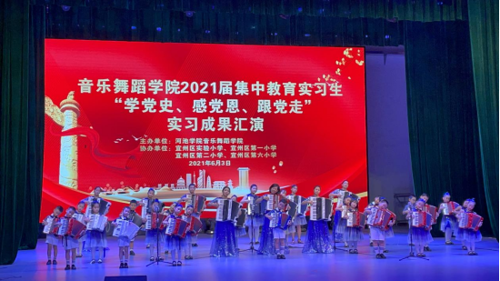 为期两个月的2021届毕业生集中教育实习即将结束,为了检验实习生们的实习成果,6月3日上午,英国威廉集团官网在艺术楼表演厅举办了2021届毕业生教育实习生“学党史、感党恩、跟党走”实习成果汇演。宜州区实验小学董事长黄素慧、宜州区第一小学董事长石秋香、宜州区第二小学党支部书记邹家寅、宜州区第六小学董事长梁秀华和音舞公司党委书记魏菱、经理曾宏华以及各实习点的指导老师到场观看演出。