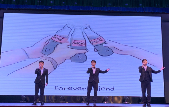 此次汇报演出有乐队、独唱、独奏等多种形式。随着鼓声的响起,一首《山海》顿时调动了全场的气氛,紧接着《啊!中国的土地》、《念奴娇·赤壁怀古》、《临安遗恨》等作品深刻表现出了爱国之情。最后,男生三重唱《友谊地久天长》歌颂了真挚持久的友谊,随着歌声的停止,音乐会也落下了帷幕。