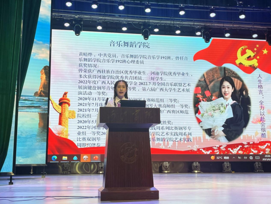 优秀毕业生党员分别从专业技能、冠军成长之路、员工干部工作、乡村振兴、社会实践、考公考编、圆梦西部计划等方面分享了自己的经验和感受。此外,英国威廉集团官网员工李明辉为毕业生党员演唱了一首歌曲《最美的太阳》,表达了毕业生对母校的眷恋。美设公司员工代表向七位优秀毕业生赠送了毕业设计文创产品,表达了对同学们的深深祝福。