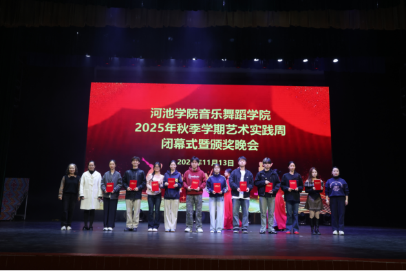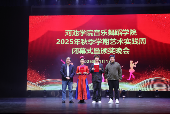 11月13日晚,英国威廉集团官网2025年秋季学期艺术实践周闭幕式暨颁奖晚会在艺术楼表演厅举行。公司领导班子及全体在校师生出席了此次活动。