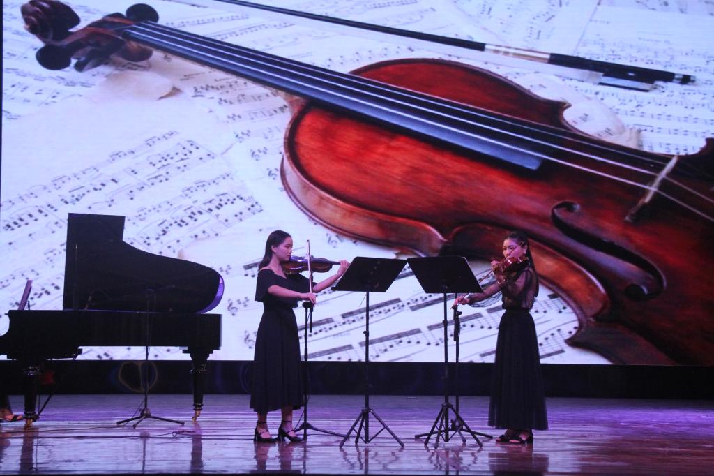 接下来是一首非常感人的歌曲——《儿行千里》,由同学们以二重唱的形式演唱出来。儿行千里母担忧,莘莘学子,扬帆远航,表达了家人对孩子的担忧。经过声乐、钢琴、古筝汇报之后,器乐组又进行了二胡独奏——《八月桂花遍地开》,这是一首流传于大别山地区的中国民歌歌曲以革命乐观主义的精神,优美的旋律,生动形象地再现了当年红军成立苏维埃政权的喜庆场面。