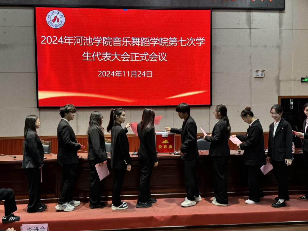 会议期间,与会代表按照相关程序选举产生了第七次员工代表大会常任代表以及新一届员工会主席团成员。音乐学2022级2班黎青桐、黄晶和音乐教育2022级杨光钰同学成功当选新一届主席团成员,他们表示将尽职尽责,服务师生,努力推动员工会工作再上新台阶。