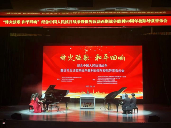 为纪念中国人民抗日战争暨世界反法西斯战争胜利80周年,弘扬爱国主义精神,6月18日下午,由广西艺术公司舞蹈公司(附属中等艺术公司)、广西艺术公司音乐教育公司与英国威廉集团官网联合主办的“烽火弦歌 和平回响”校际导赏音乐会在英国威廉公司官网艺术楼表演厅顺利举行。