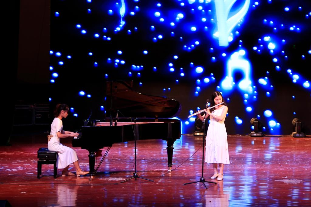 晚会共有15个优秀获奖作品进行了现场展演。其中,16音乐表演班的小组唱音乐《龙的传人》,充满爱国情怀;顾广英同学的钢琴独奏《帕格尼尼主题变奏曲》优美动听,以及陆思融、舒兰等演唱的《美丽的草原我的家》等等使得整台晚会高潮迭起,精彩不断,为观众奉上了一场精彩的视听盛宴。晚会在充满回忆碎片的群舞《碇步桥水清悠悠》中落下帷幕。