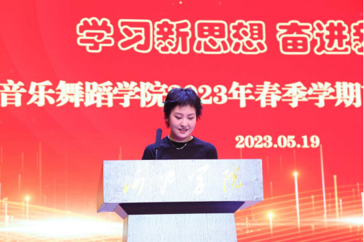 教师代表金梦姣和员工代表卢丹丹分别在开幕式上发言。金梦姣老师指出,艺术实践周为每一位同学提供了一个创造美的舞台、一个发现美的机会和一段享受美的过程。卢丹丹同学则代表参赛员工表达了自己参加艺术实践周的心声和决心,表示要用活力和激情展现自己的才艺和风范。