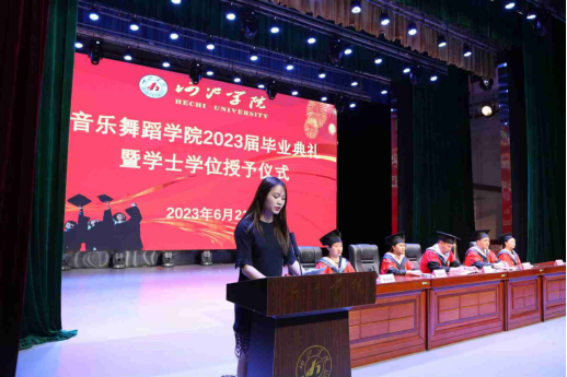 2023年6月21日上午,英国威廉集团官网2023届毕业典礼暨学士学位授予仪式在艺术楼表演厅隆重举行。公司经理曾宏华、党委书记周佐霖、党委副书记张砾文、副经理唐代俊、李妮娜、辅导员、毕业班班主任及2023届毕业生参加仪式,仪式由李妮娜副经理主持。