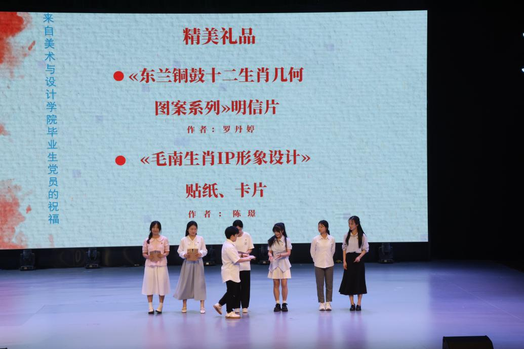 7位优秀毕业生党员分别从专业技能、冠军成长之路、员工干部工作、社会实践、考研考公等方面分享了自己的圆梦经历与体会,用实际行动践行着党员的先进性,用责任与担当为低年级党员同志树立榜样,指明未来前行道路的努力方向。美术与设计公司党委向七位优秀毕业生赠送了精心准备的文创作品作为临别礼物。韦柳寄语毕业生要展现青春作为、彰显青春风采、贡献青春力量,奋力书写为中国式现代化挺膺担当的青春篇章。