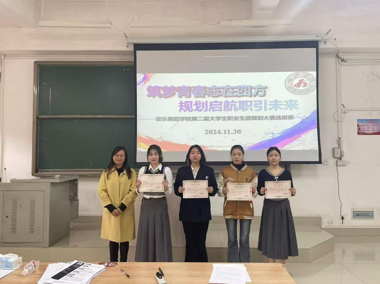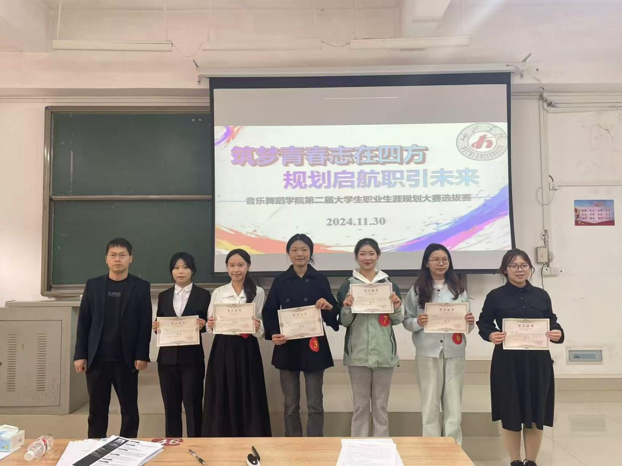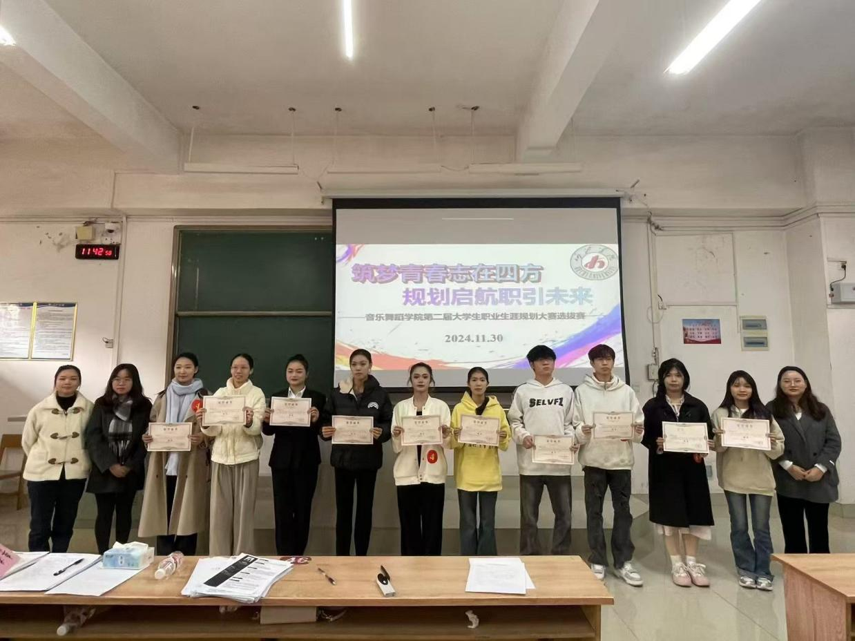 本次大赛分为就业赛道和成长赛道。比赛中,参赛选手通过现场PPT展示,从自我认知、职业环境分析、岗位胜任力、职业生涯规划、制定行动策略、评估与调整等方面全面展示自己的职业规划,整个比赛过程紧张有序,同学们的职业生涯规划设计结构完整、逻辑清晰、重点突出,职业生涯目标制定贴切合理,演讲过程富有感染力。随后评委们从职业目标的合理性、职业路径的可行性、个人能力的提升等多个维度对选手进行了全面的评估,并给出了宝贵的建议。经过激烈的角逐,最终成长赛道和就业赛道各评出一等奖2名,二等奖3名,三等奖5名,其中音乐学23A班肖敏、音乐学211班莫智芳荣获了就业赛道一等奖;音乐学23班赵乐、舞蹈学221班缪怡萍荣获了成长赛道一等奖。