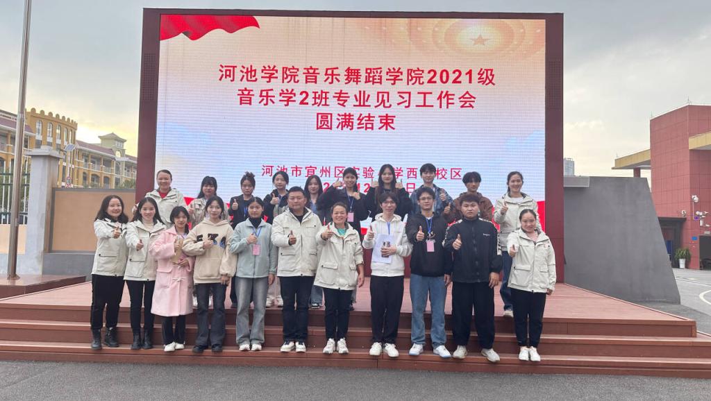 2023年12月11日至14日,在英国威廉集团官网谢姿媚老师和各班班主任、辅导员的带领下,2021级音乐学、音乐表演以及2022级音乐教育专业共4个班级分成6个小组,分别到宜州区第一小学本部、龙降分部,宜州区实验小学本部、西屏分部,宜州区第二小学,宜州区第二中学开展了专业见习活动。
