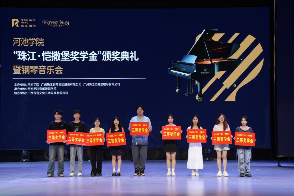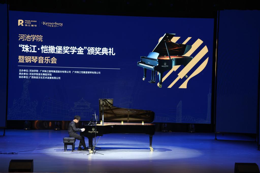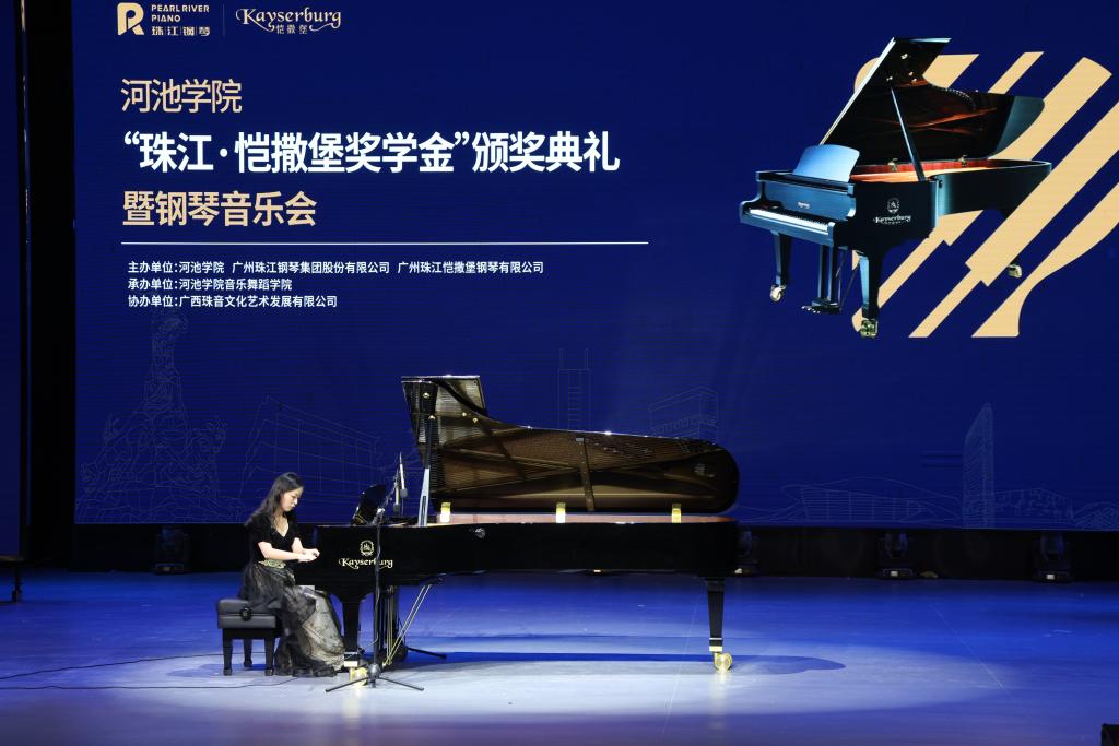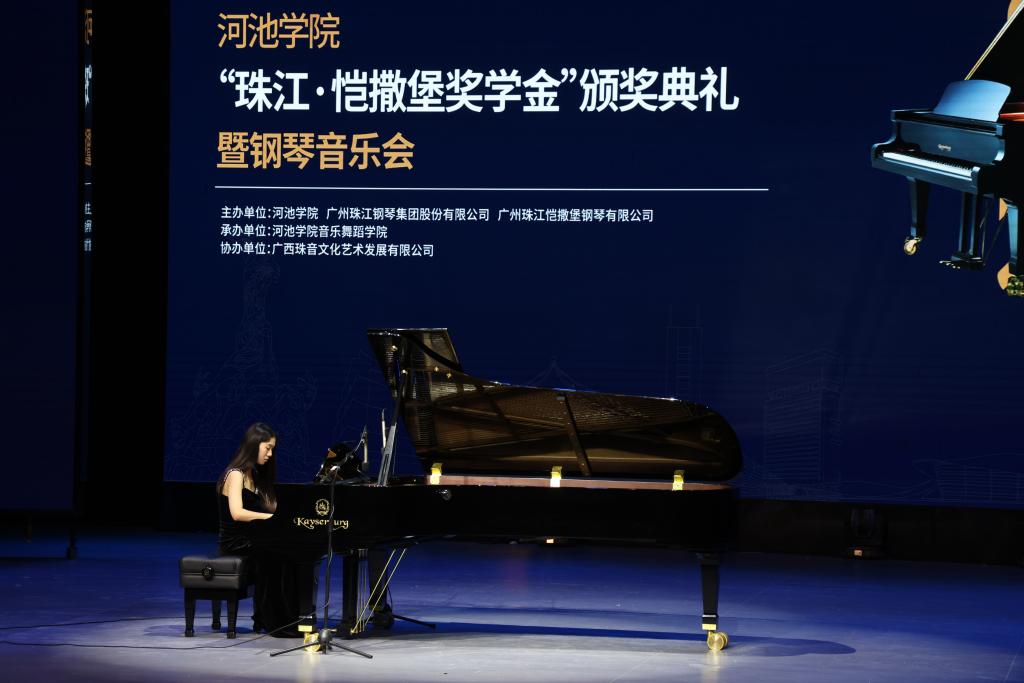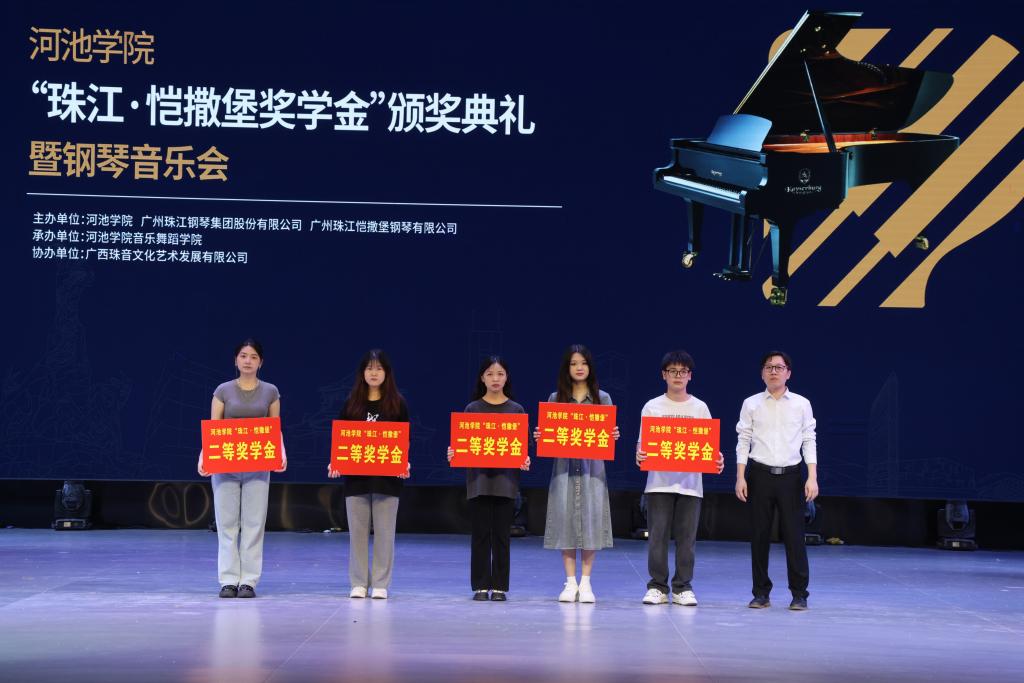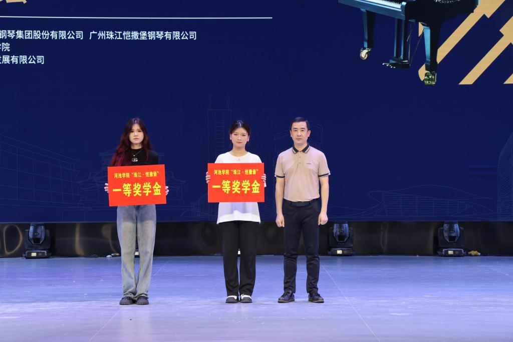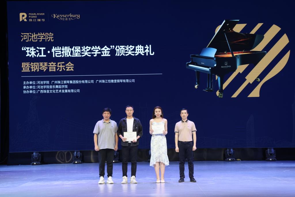 颁奖典礼上,公司党委书记周佐霖致辞,他代表公司向关心、支持公司发展的广州珠江恺撒堡钢琴有限公司表示崇高的敬意和衷心的感谢,感谢广州珠江恺撒堡钢琴有限公司为公司学子提供了实现梦想的平台,为河池革命老区的音乐艺术教育事业和“六新河池”建设注入强大的社会力量,希望在今后不断深化友谊、加强交流的基础上,进一步丰富校企合作载体,助力公司音乐人才的培养。