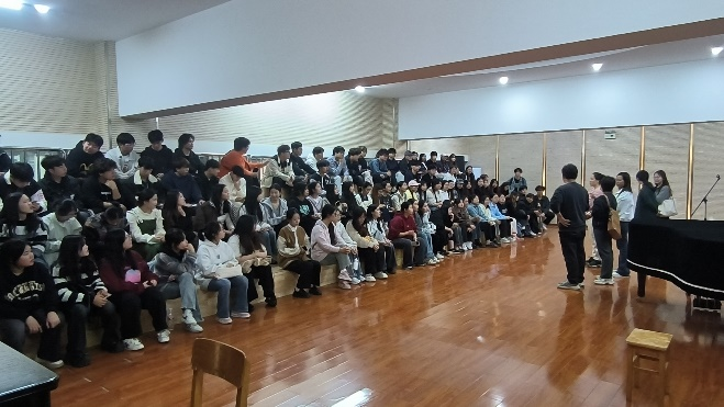 会上,曾宏华首先强调了本次教育见习的重要性,他指出,教育见习是音乐教育专业人才培养过程中不可缺少的实践教学环节,全体同学要高度重视,积极参与,要严守见习纪律,尊重指导教师,认真听课,认真做好听课记录,认真撰写见习报告,按质按量完成见习任务。张砾文强调了员工的安全问题,特别是要做好考勤工作。任课教师谢姿媚教授对员工如何听课作了专门指导。同学们一致表示,一定要认真参加本次见习活动,学习先进的教学经验,增强自身的职业认同感。