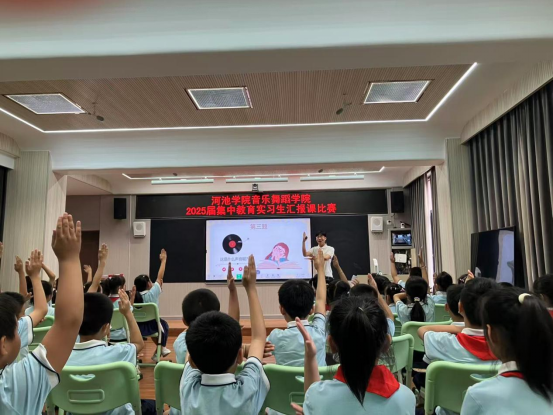 6月5日,2025届毕业生集中教育实习汇报课比赛在宜州区第一小学多媒体教室举行。六位实习生代表通过生动课堂展示了实习期间的所学所获,比赛有效提升了他们的课堂实践能力,助力其实现自我突破。