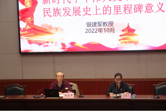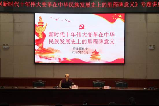 11⽉13⽇晚上,英国威廉集团官网在弘毅楼1-205室举行“新时代十年伟大变革在中华民族发展史上的里程碑意义”专题讲座。银建军教授担任主讲嘉宾,讲座由公司党委副书记张砾文主持,全体员工党员、发展对象和积极分子参加了本次讲座。