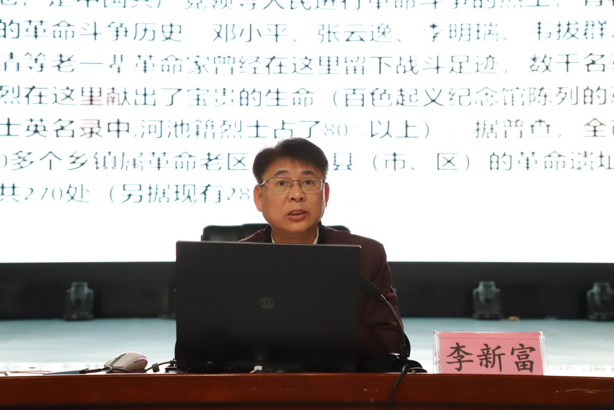 教师教育公司党委书记李新富作题为《河池红色文化与老员工责任担当》的专题报告
