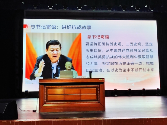 培训中,银建军教授以“铭记历史,勿忘国耻:弘扬伟大抗战精神,实现中华民族的伟大复兴”为主题,围绕抗战精神核心内涵、抗战胜利关键因素及时代启示展开讲授。他重点阐释“爱国情怀、民族气节、英雄气概、必胜信念”四大核心精神,并结合习近平总书记相关重要论述,强调抗战精神是实现民族复兴的重要精神力量。通过大量史料、典型战役与英雄事迹,银教授全面展现了中国共产党在全民族抗战中的中流砥柱作用。