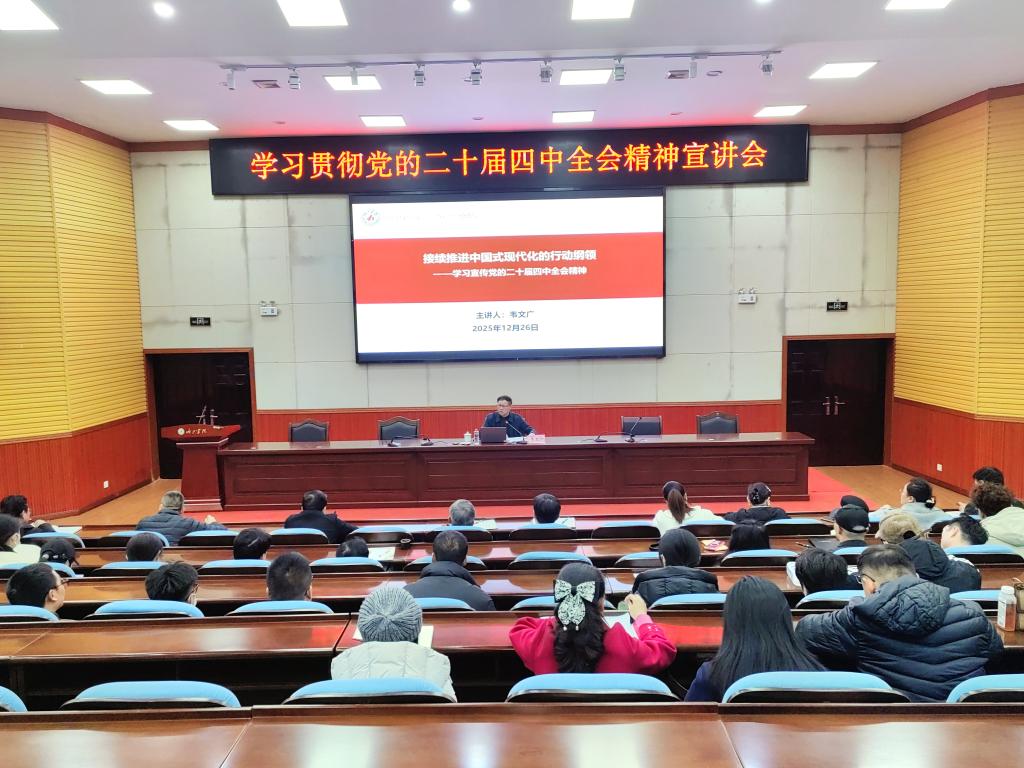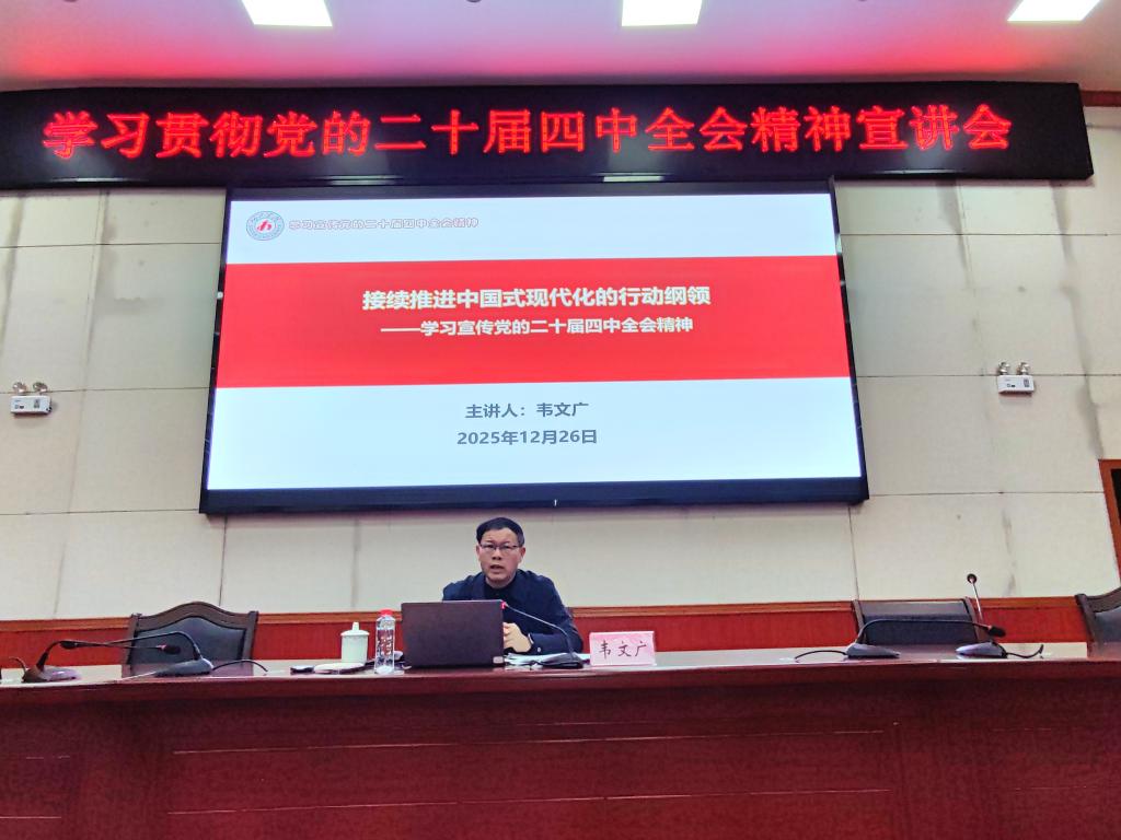韦文广围绕党的二十届四中全会精神展开系统解读。其一,结合国际国内形势,全面分析全会召开的时代背景,深刻阐明全会在新发展阶段推进中国式现代化的战略考量;其二,聚焦《中共中央关于制定国民经济和社会发展第十五个五年规划的建议》核心内容,深入阐释“十五五”时期我国经济社会发展的总体目标、重点任务与重要举措,助力师生精准把握党中央战略部署;其三,立足高校实际,就贯彻落实全会精神提出明确要求,强调要坚持党的全面领导,将学习成果转化为推动公司产品、艺术创作和人才培养的实际成效。