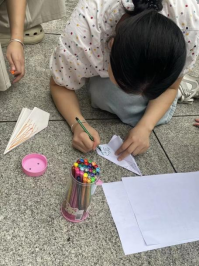 此外,服务团还设计了一系列特色活动,如“音乐节奏闯关”“红色歌曲猜猜猜”“节奏跳房子” 等,通过趣味游戏的方式,培养孩子们的节奏感、协作能力和对红色经典歌曲的了解。活动尾声的“放飞梦想纸飞机” 仪式,更是让孩子们在纸飞机上写下理想与祝福,向着美好未来勇敢启航。